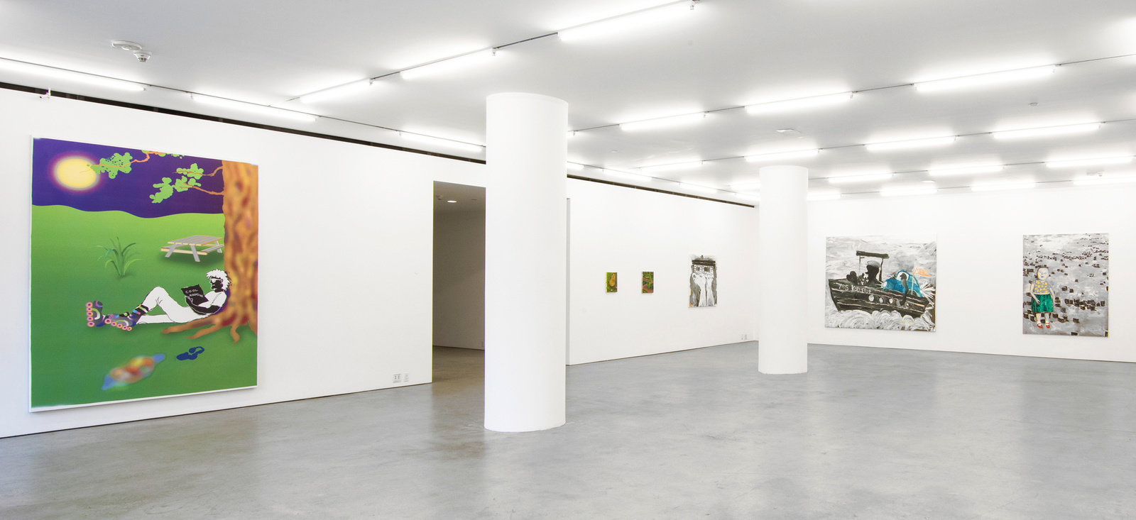Colliding Alien Cargo takes its title from a snippet of conversation between the art historian Werner Hoffman and a grandmaster of titles himself, Werner Büttner. The exhibition is intended initiate its own dialogue between the German artist and five painters for whom he has been an inspiration or with whom he shares a kinship of approach. Most recognizably, there is the coexistence of a determined crudity with elegance and intelligence—in line, paint-handling and subject. Conventions of painting are honored and flouted, contorted and reconfigured at a whim, but with real conviction and point of view.