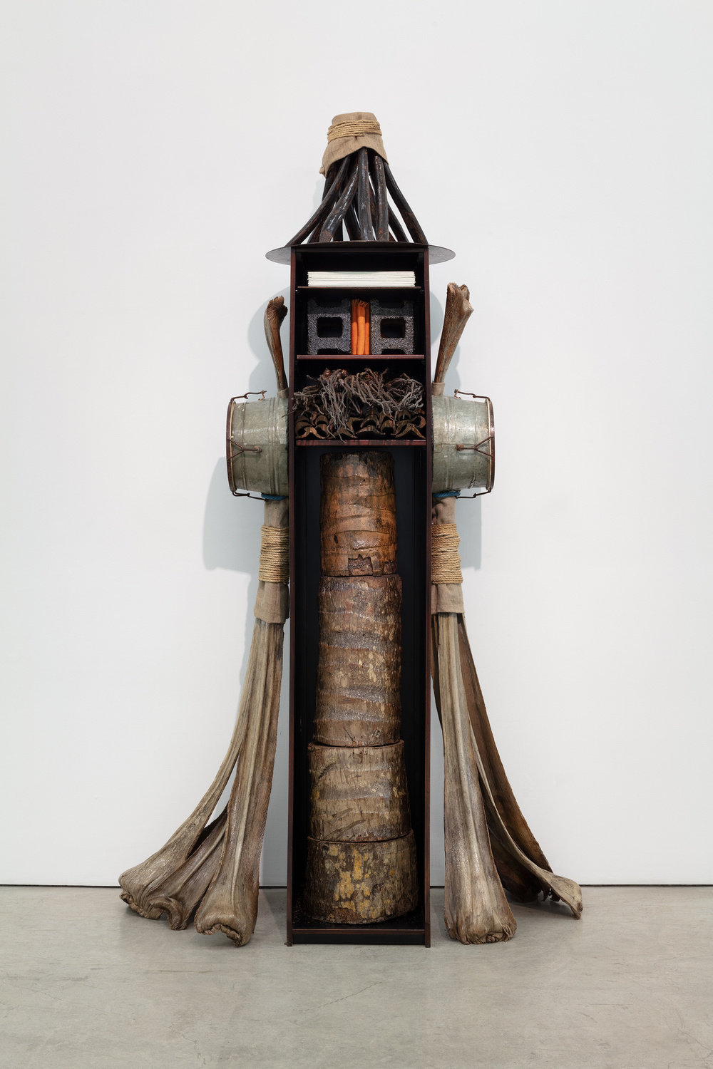 Lind-Ramos has always told powerful stories through his works of art. It’s no wonder as oral, culinary, musical and visual storytelling are part of his Afro-descendent history and fundamental to his philosophy of being. As evident in the seven pieces exhibited here, Lind-Ramos’ sculptures have a powerful spirit-like presence portraying strength, potency, and depth. Each piece conveys a very particular story through the careful selection and use of materials.