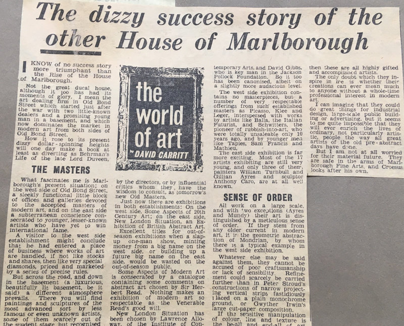 David Carritt, 'The Dizzy Success Story of the Other House of Marlborough,' Evening Standard, September 6, 1961.