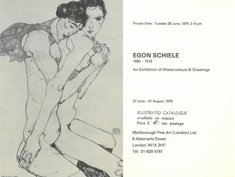 Exhibition invite for Egon Schiele: An exhibition of Watercolours and Drawings, June 27 - August 3, 1979, Marlborough Fine Art, London.