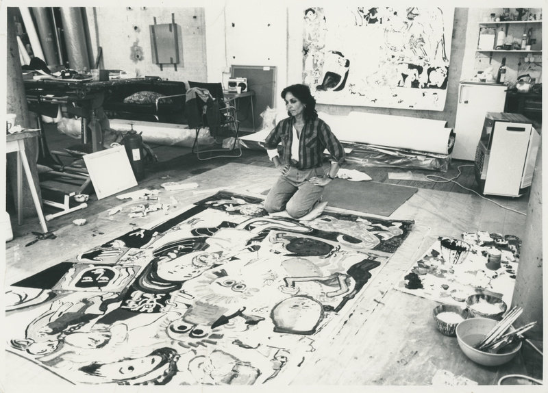 Paula Rego in her studio with her painting, Vivian Girls, 1984. Photo: Irene Rhoden.